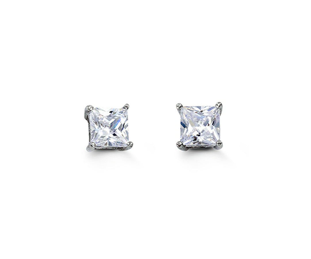 Bella Sterling Silver 4mm Square CZ Stud Earrings