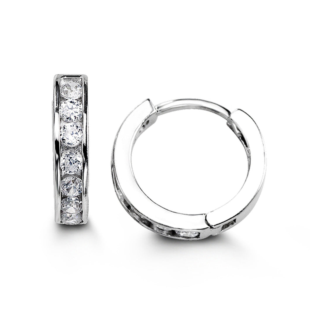 Bella Sterling Silver CZ Huggies. 15x6mm