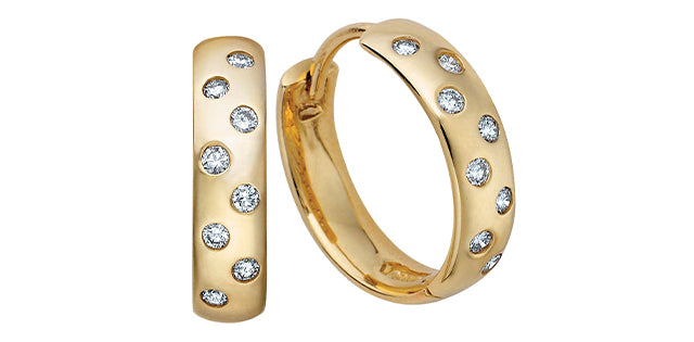 10k Gold Hoop And Dangle Diamond Earrings. 0.07tdw