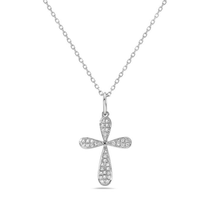 14K White Gold Natural Diamond Cross Pendant