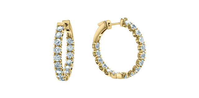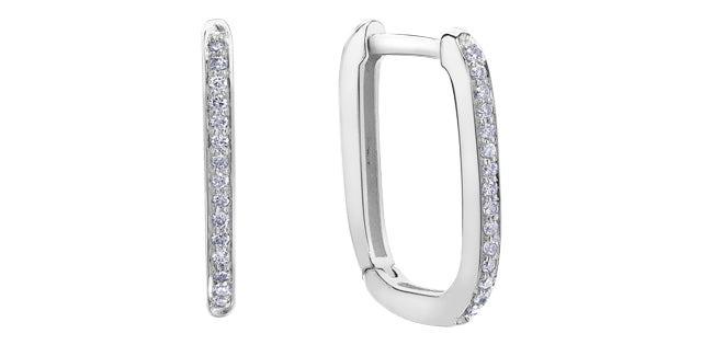 10k Gold Rectangular Diamond Hoop Earrings. 0.15tdw