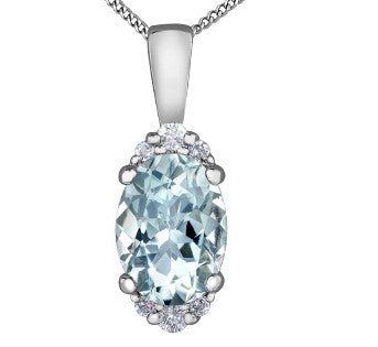 10K Aquamarine & Diamond Pendant 0.05TDW