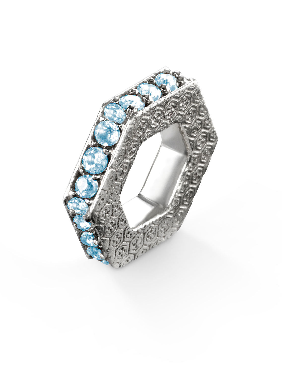 B Couture Keepsake 925 sterling silver hexagon stone ringlet, Aquamarine (March)