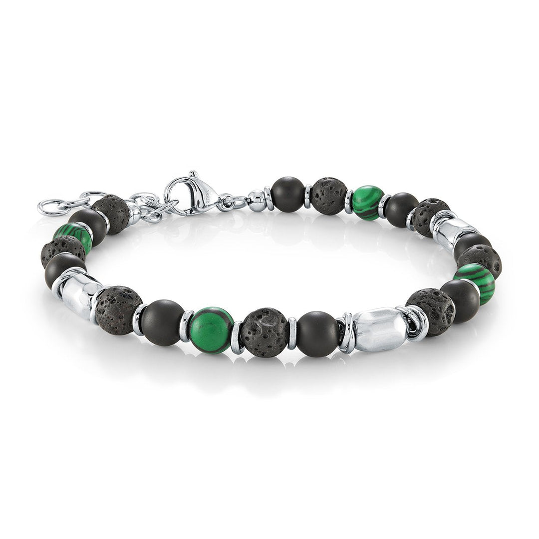 Italgem Steel Malachite and Onyx Lava Beaded Bracelet