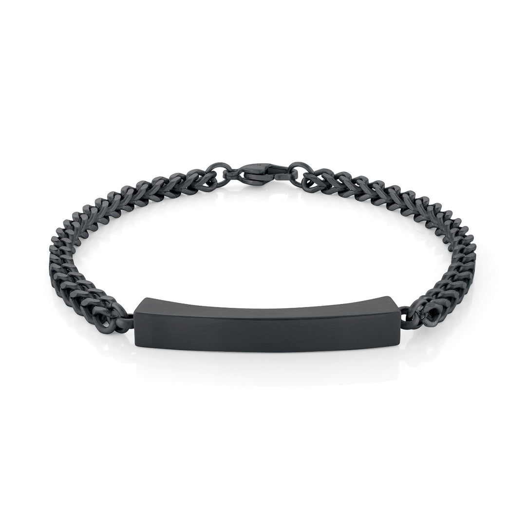 Italgem Steel Black Braided Leather Bracelet with Engraved Front Plate
