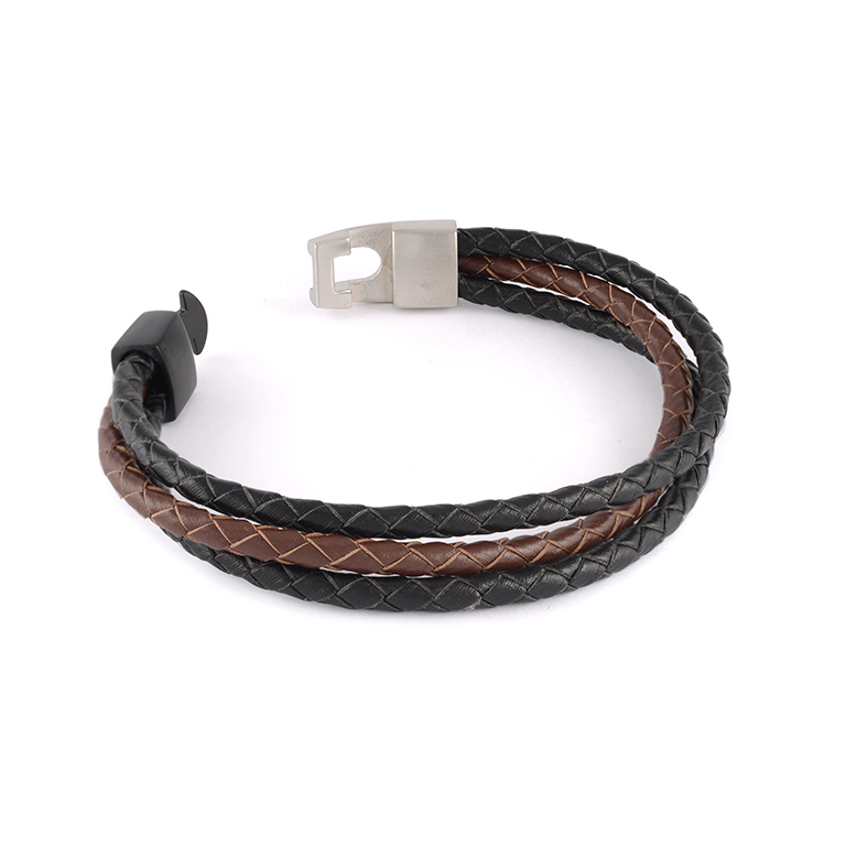 Italgem Steel Braided Leather Bracelet