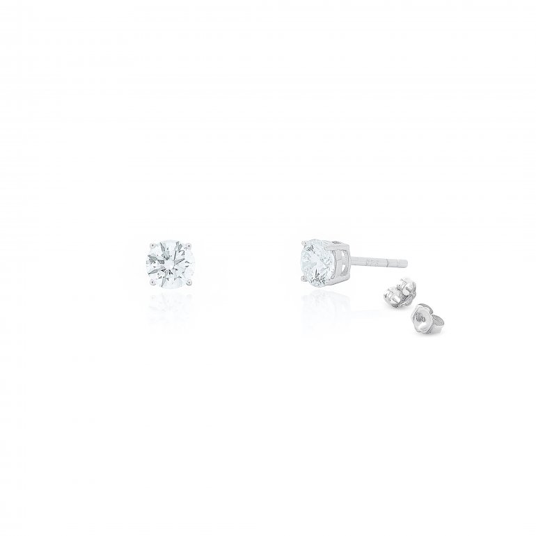 Sterling Silver White Stud 1.00 Round SI2 H/I