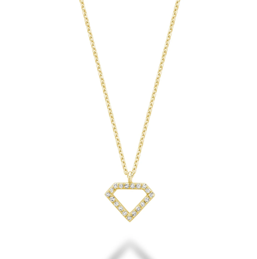 14k yellow gold diamond shaped pendant (7 x 9 mm), 0.06 tdw round cut diamonds, I1 clarity, G-H colour, includes 17" cable link chain